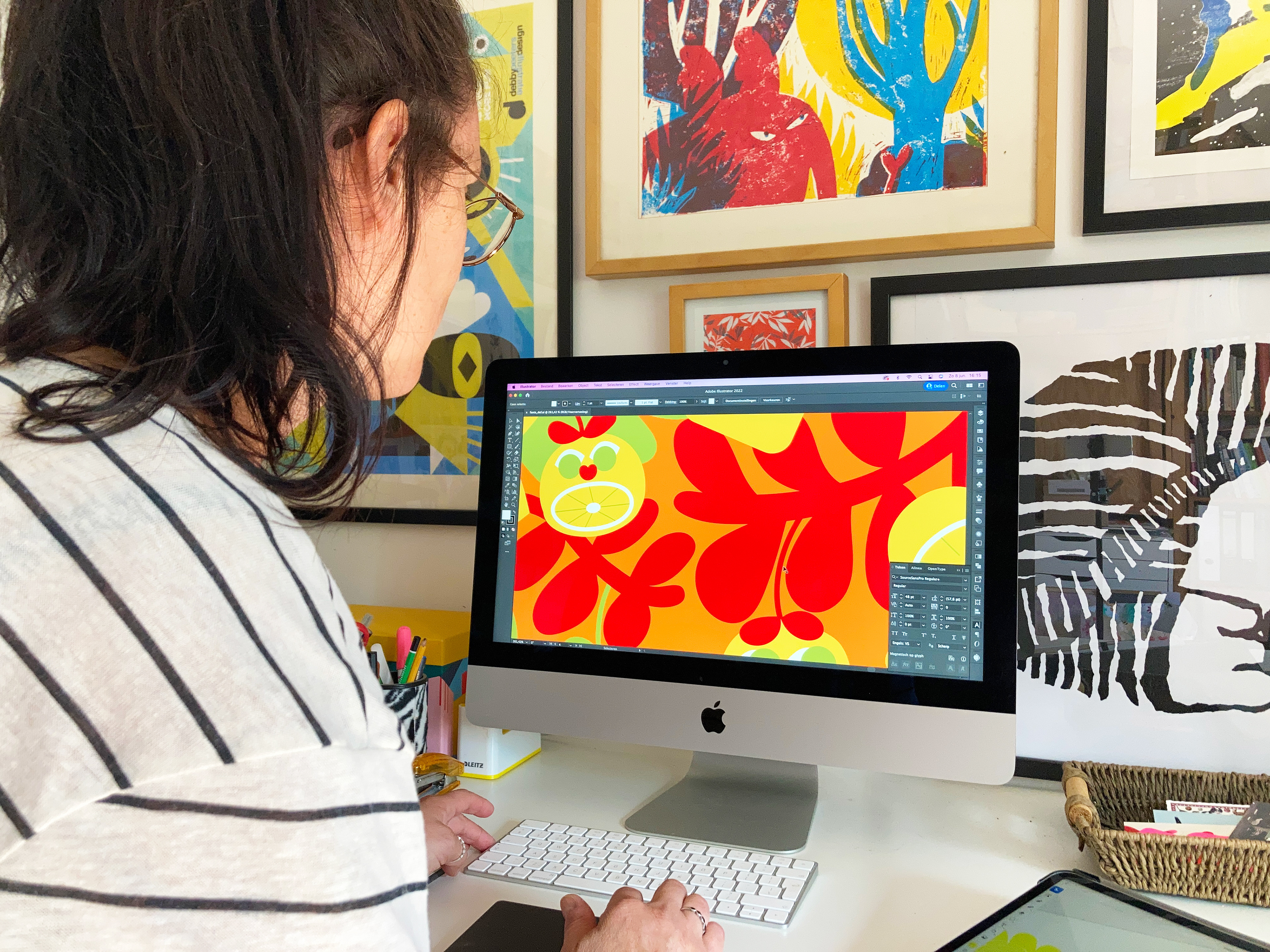 Her studio is based in a small town in the south of the Netherlands. Debby's work is bold, colorful, and often features imaginative, animal-inspired figures.