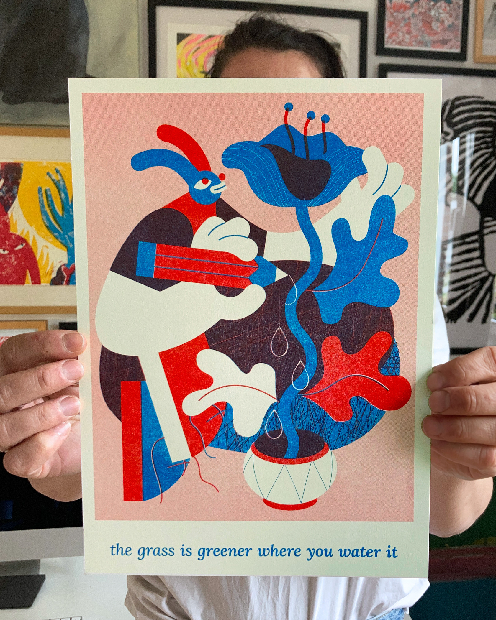 Rispoprint in Rood en Blauw op offwhite papier 120 gr.