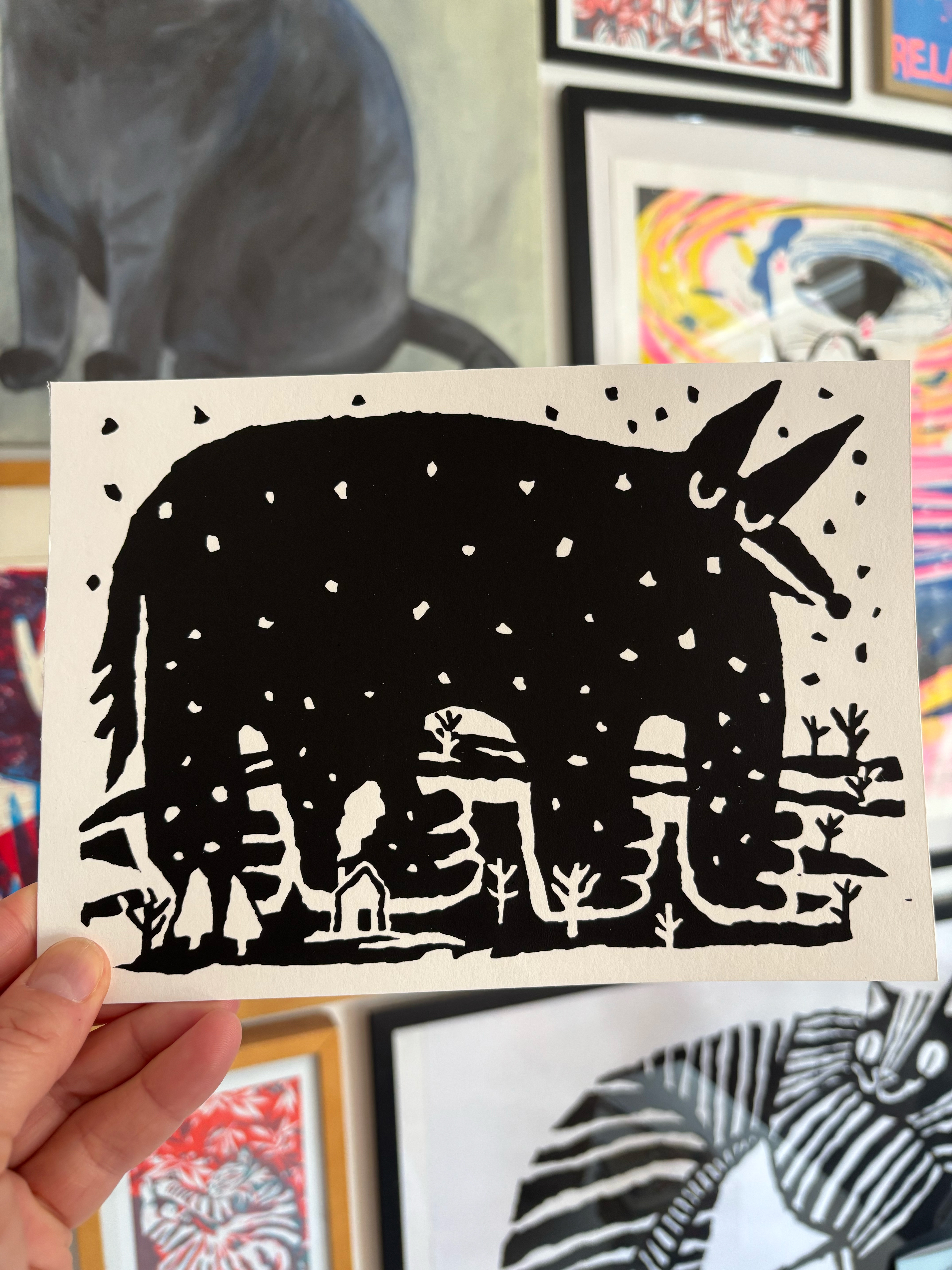 Zeefdruk in zwart op 300 gr. papier
